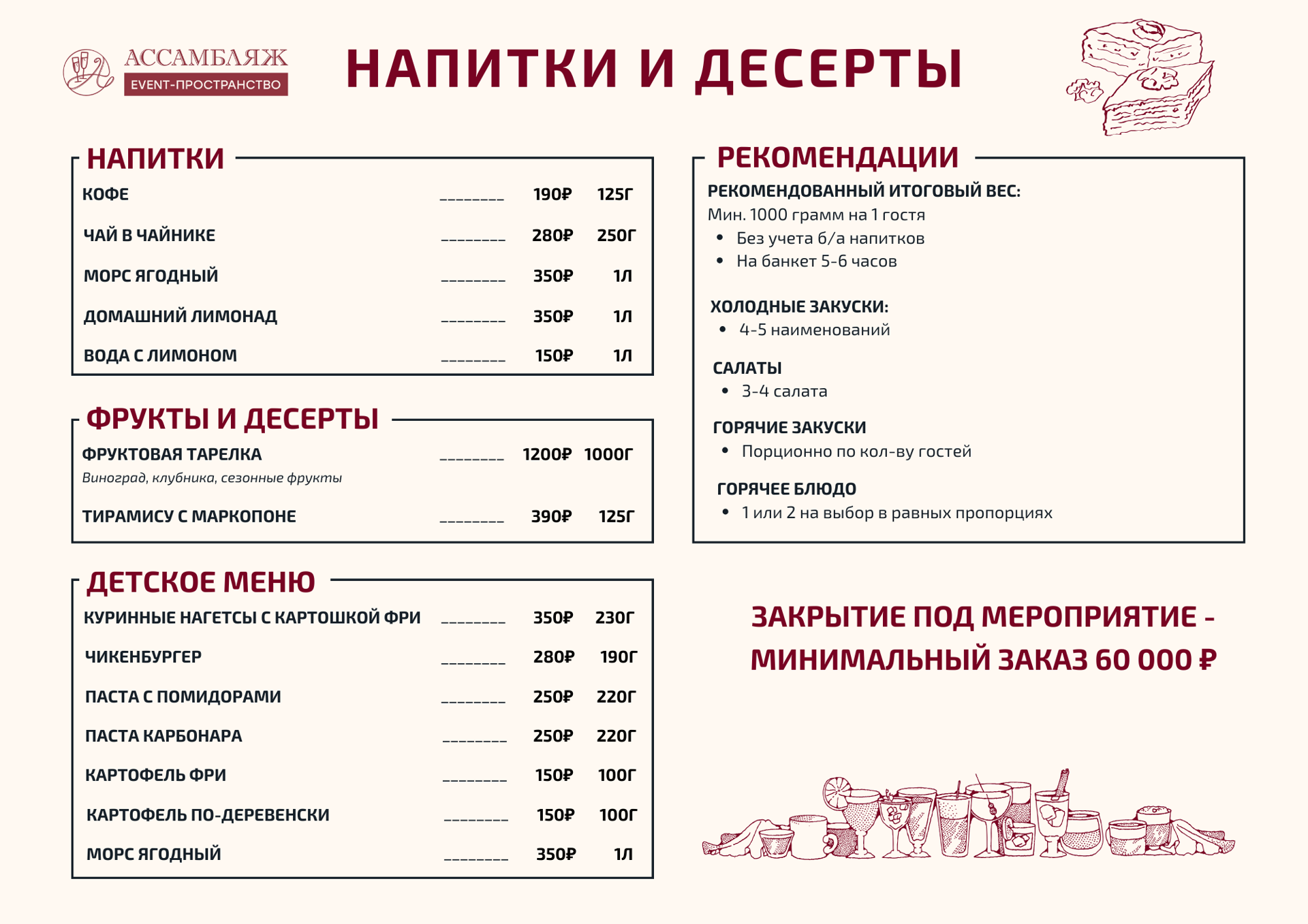 - Уборка после мероприятия - 3 000 ₽