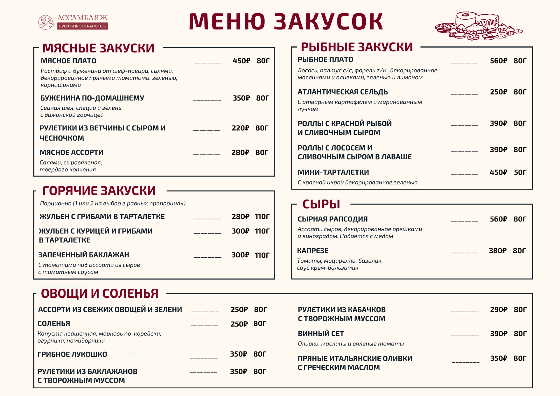 Банкетное меню от 3 500 ₽/гость
